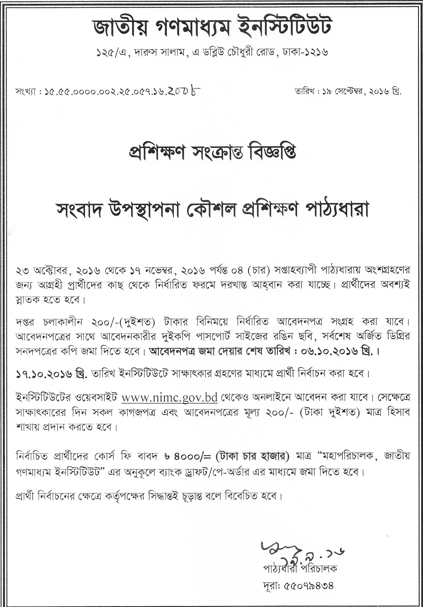 | ৮ | সংবাদ উপস্থপনা কৌশল প্রশিক্ষণ পাঠ্যধারা | | | | ১৯-০৯-২০১৬ | দেখুন |