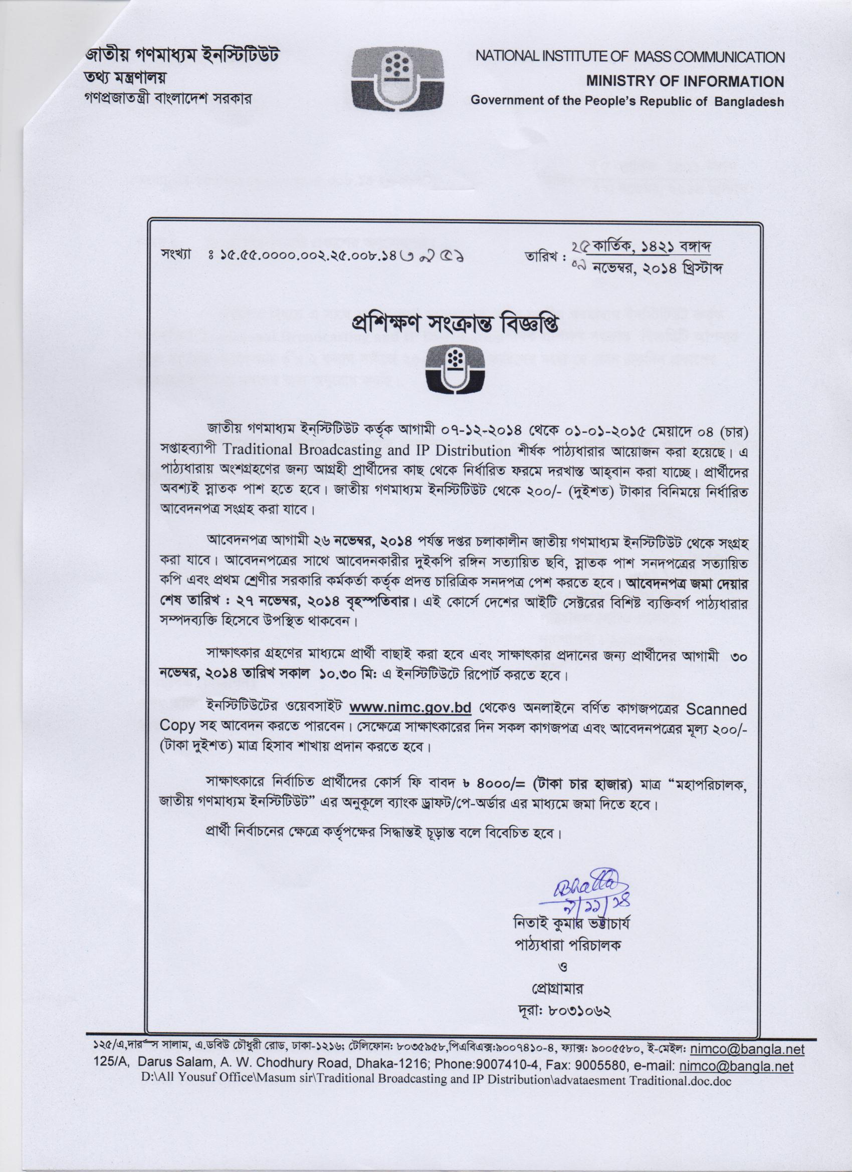 | ৯ | অনুষ্ঠান উপস্থাপনা প্রশিক্ষণ পাঠ্যধারার ভর্তি বিজ্ঞপ্তি | | | | ১৪-১২-২০১৫ | দেখুন |