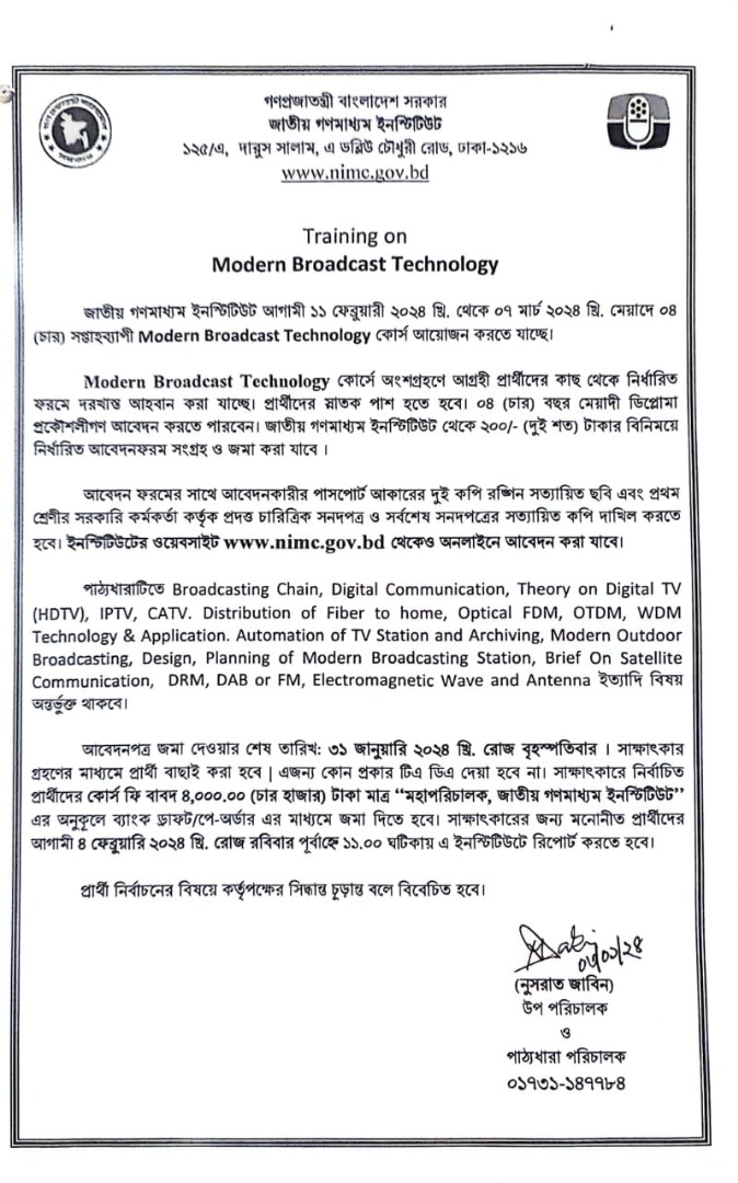 | Modern Broadcast Technology প্রশিক্ষণ পাঠ্যধারার বিজ্ঞাপন | বিস্তারিত |